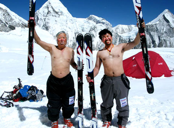 Yuichiro Miura climbed to the summit of the 8,850 metre (29,035 ft) mountain in 2003 and 2008 while he skied down Everest from an altitude of 8,000 metres (26,246 ft) in 1970.